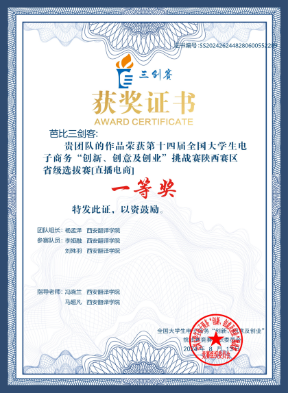 通过“行业引领,竞赛驱动”稳步推进专业教学工作,使得更多行业精英进学校、进课堂,引导学生参与各类学科竞赛。学生积极参加相关学科竞赛如互联网+大赛、电子商务三创赛、发现杯大赛、移动电子商务大赛、计算机设计大赛等。近年来,学生荣获国家级奖项7项,省级奖项20余项。薛国庆同学被企业投资500万创办西安蓝果星创网络公司。“扎染魅力”项目荣获第八届全国大学生电子商务“三创赛”总决赛特等奖,我校成为唯一入围全国总决赛且荣获特等奖的民办高校。