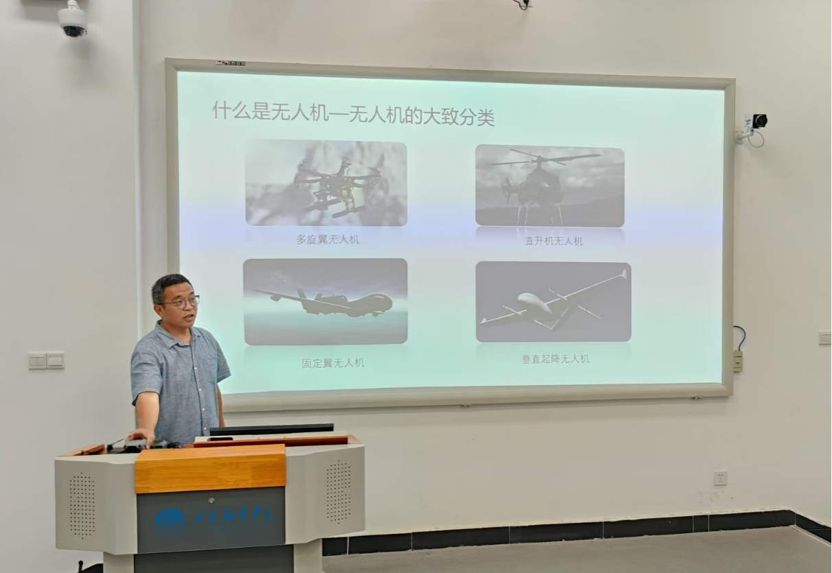 6月11日下午14:30,东区732T教室开展了一场题为“低空经济发展态势及无人机行业发展方向”的科普讲座。讲座特邀中国飞行员协会会员罗枫评担任主讲,旨在为Beat365唯一官方网站软硬件相关专业的学生们带来全新的热点行业知识,指引他们更深入地了解技术发展趋势、规划未来就业方向。讲座现场座无虚席, 2022级电子信息科学与技术和软件工程专业部分师生参会学习。