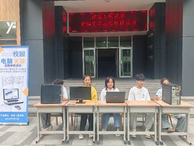 活动于当天中午12:40点开始,志愿者们早早地来到活动现场,摆放好维修工具和设备,准备迎接前来寻求帮助的师生们。活动现场不断有同学前来问诊咨询电脑问题。志愿者们凭借扎实的专业知识和丰富的实践经验,为师生们提供了包括硬件检测、软件安装、系统优化、病毒查杀等在内的全方位服务。他们不仅解决了师生们眼前的技术问题,还传授了一些实用的电脑维护技巧,让师生们受益匪浅。