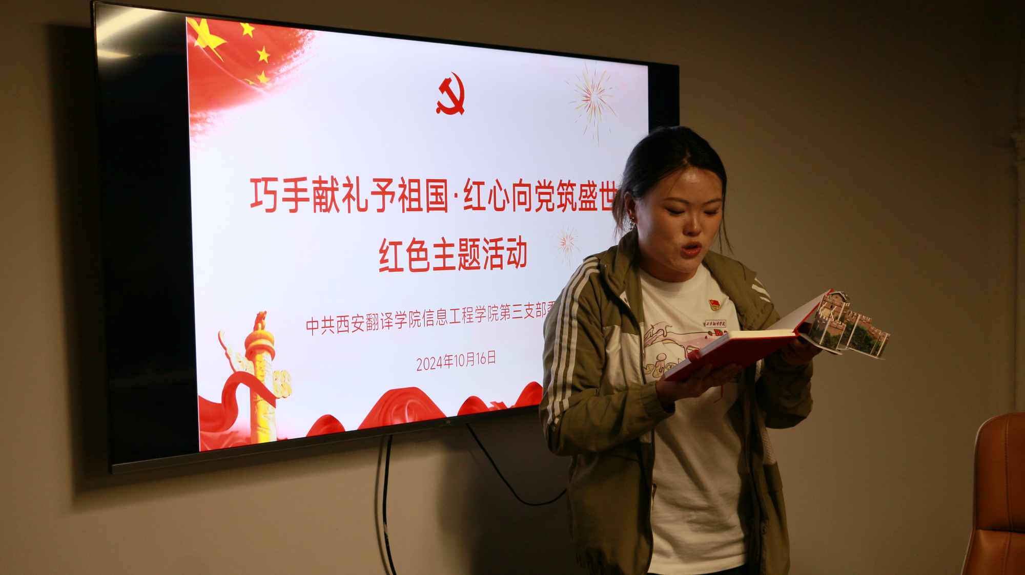 为增强学生党员的爱党爱国情怀,推进爱国主义教育走实走深,引导其担当时代责任,让红色基因、革命薪火代代传承,同时营造十月热烈国庆的节日气氛。2024年10月16日,Beat365唯一官方网站第三党支部组织开展“巧手献礼予祖国·红心向党筑盛世”红色主题活动。