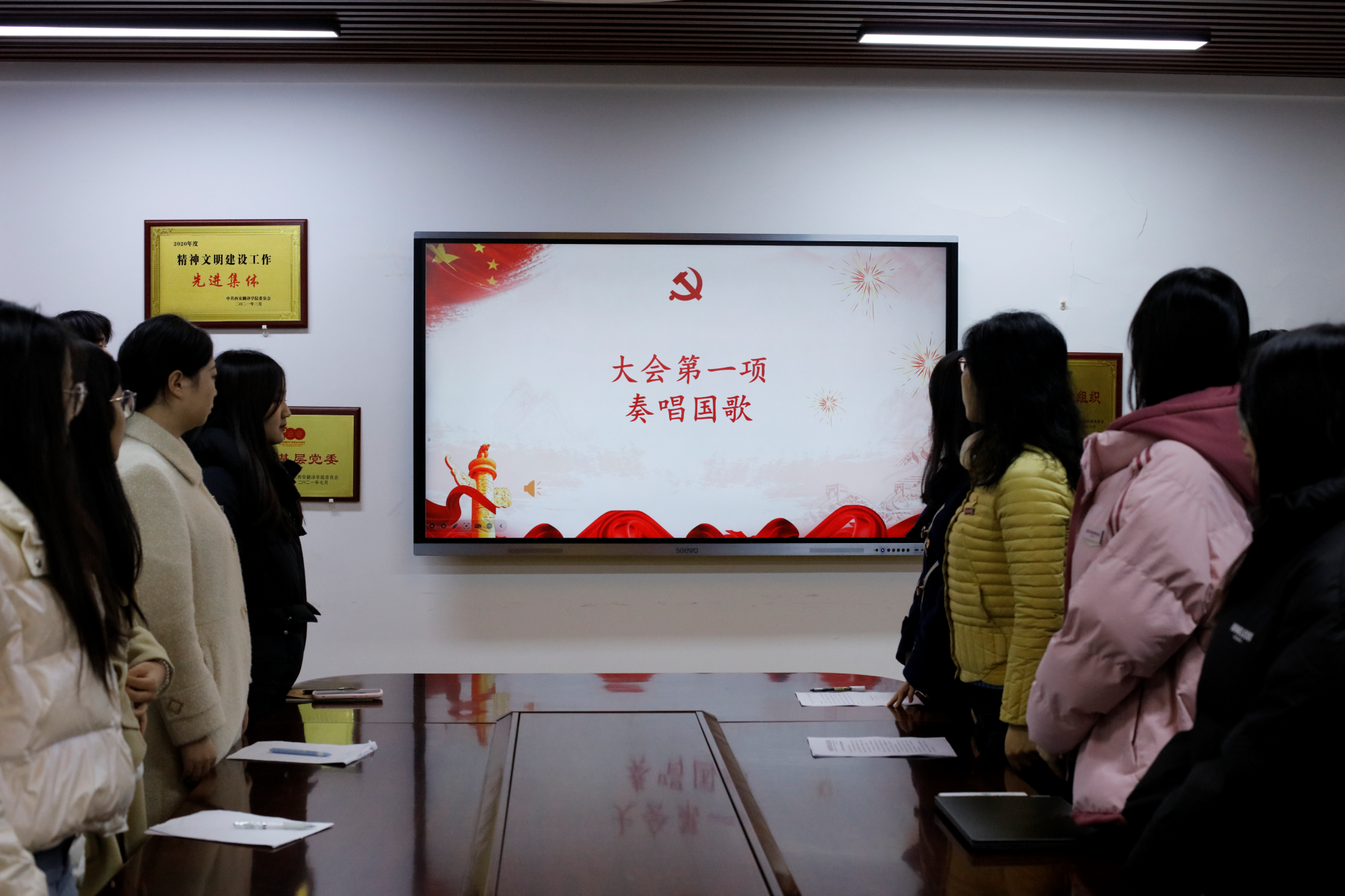 会议在庄严的国歌声中拉开了帷幕。与会同志全体起立,奏唱《中华人民共和国国歌》。