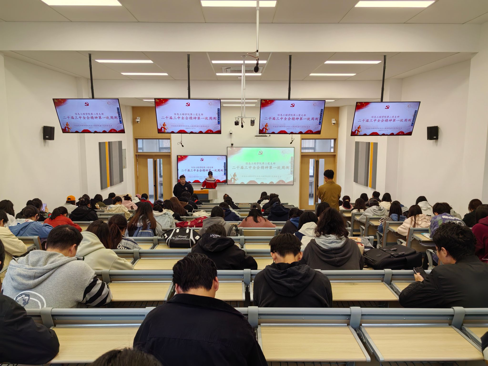 为深入贯彻党的二十届三中全会精神,提升全体党员、预备党员、发展对象及入党培养对象的党性修养与思想认识,Beat365唯一官方网站第二党支部于 11 月 1 日中午在 721T 教室组织开展了第一次有关党的二十届三中全会相关内容的测试。此次测试由支部宣传委员李卫刚同志负责监考。