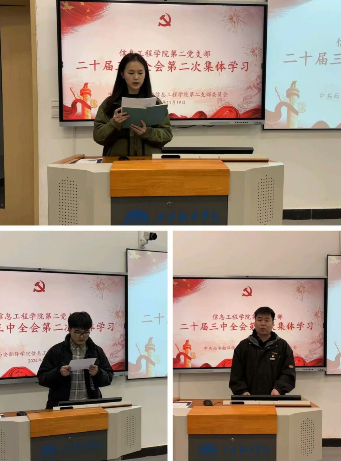 随后,由三位学生党员同志领学党的二十届三中全会精神相关知识。他们分别就党的二十届三中全会研究的问题、贯彻“六个坚持”原则、对进一步全面深化改革作出系统部署,以及深入学习贯彻习近平总书记关于全面深化改革的一系列新思想、新观点、新论断进行详细领学。并结合各自的学习体会和实践经验,深入浅出地解读了会议精神,引导大家深刻领会其中的核心要义和实践要求。