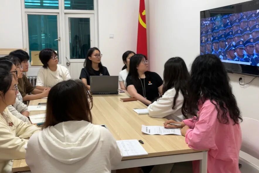 正值纪念中国人民抗日战争暨世界反法西斯战争胜利80周年阅兵举行之际,沈平利同志领看九三阅兵视频,带领学生党员重温波澜壮阔的历史瞬间,感受国家力量与民族精神。观看结束后,她结合视频内容普及党史知识,帮助党员们更深刻理解党的奋斗历程与伟大成就,进一步强化党性修养和历史使命感。