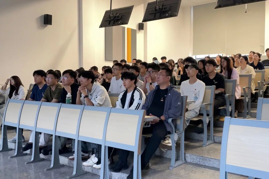 活动过程中,师生党员们共同观看阅兵仪式。荧屏之上,空中护旗梯队擎旗悬挂标语尽显大国威仪,徒步方队赓续传统又展时代英姿;战旗方队荣光不朽、精神永续,地面装备与新型战机亮剑苍穹、彰显国防现代化力量。每一幕镜头都令人热血沸腾,每一帧画面都激荡磅礴情怀。昔年烽火岁月锻造不屈脊梁,今朝铿锵步伐告慰先烈英魂。历史的回声与强军的号角在此刻交汇,我们不仅看到了一支威武之师的崭新面貌,更听见了一个民族从苦难走向复兴的浩荡征程。现场师生全神贯注,目光紧紧锁定屏幕,不时为震撼的画面鼓掌,不少党员眼中满含激动与自豪,深刻感受到身为中国人的荣耀与责任。