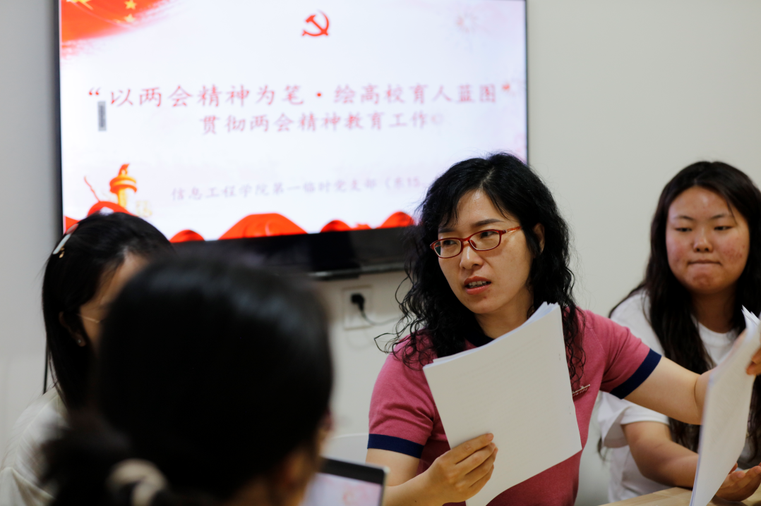 会中,由支部学生党员领学两会教育相关文件。重点解读了文件中提及的加强基础学科建设、推进教育数字化转型、完善高校人才培养体系等内容。强调要培育创新复合型人才,这意味着同志们不应局限于书本,还要多多参加科研项目、学科竞赛,锻炼创新能力。
