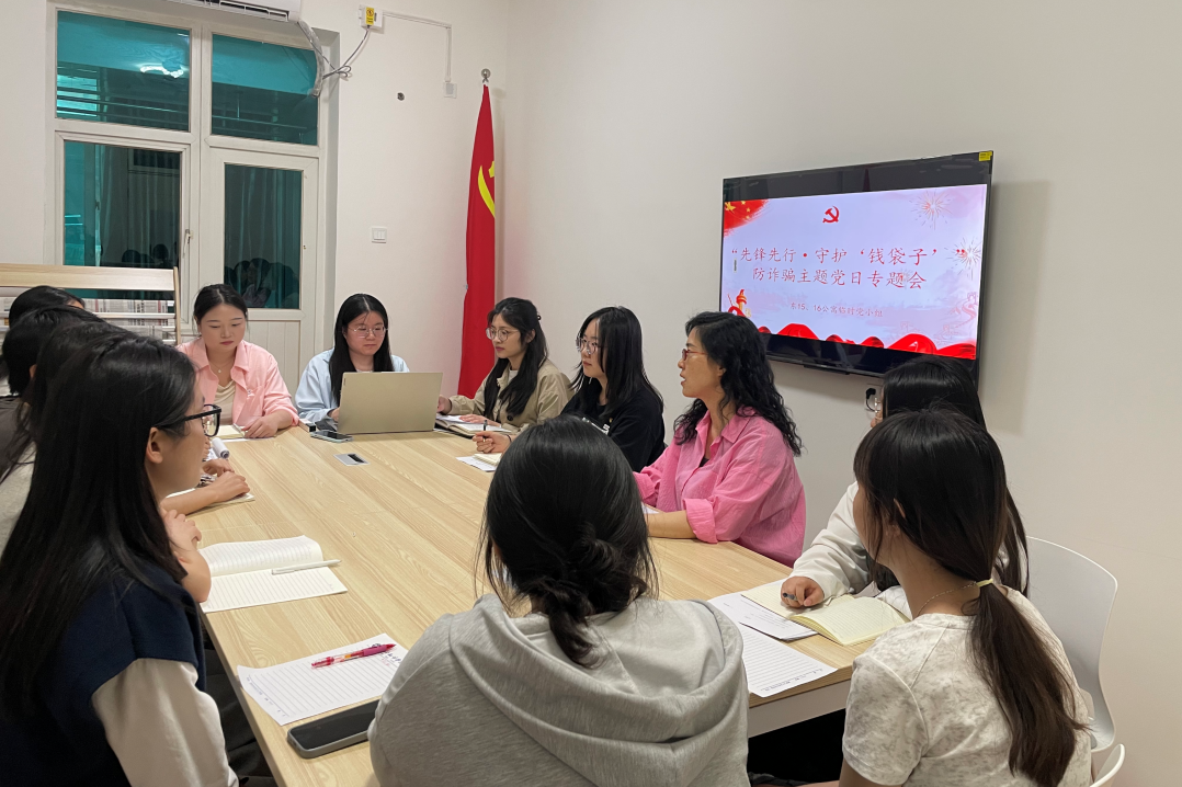 会中,沈平利同志组织党员同志进行分组讨论,围绕“身边潜在的诈骗风险”“如何在日常生活中提高防诈骗意识”等话题展开交流。每组推选代表分享小组讨论的成果和在生活中遇到的防诈骗经历,包括如何识破诈骗陷阱、采取了哪些应对措施等。通过交流分享,促进师生相互学习防诈骗经验,进一步加深对诈骗手段的认知。