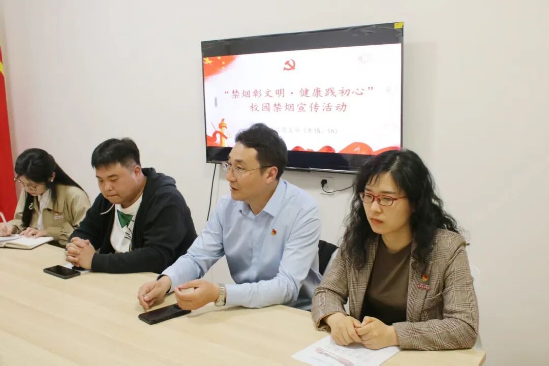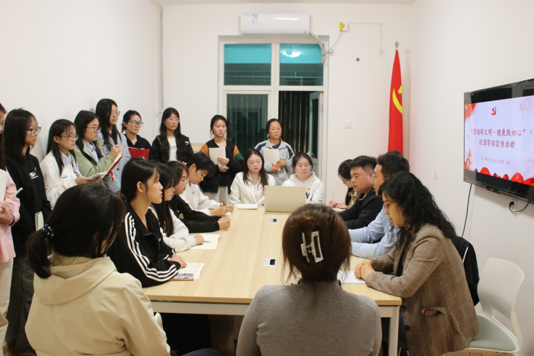 接着,沈平利同志围绕“一站式”学生社区的建设,对学生党员在控烟、禁烟工作中的具体行动提出了要求。她指出,学生党员要充分利用社区贴近学生生活的优势,深入学生宿舍,发挥模范带头与监督引导作用。一方面,要以身作则,从自身做起,坚决杜绝在宿舍内吸烟行为,以实际行动向同学们展示控烟、禁烟的决心,让“无烟宿舍”成为一种自觉追求;另一方面,要主动担当作为,定期巡查宿舍,发现吸烟情况及时劝阻,带动身边同学共同参与到控烟、禁烟行动中来,营造健康文明的宿舍环境。此外,她还鼓励学生党员收集同学们对校园控烟、禁烟工作的意见和建议,为持续优化工作方案提供参考。