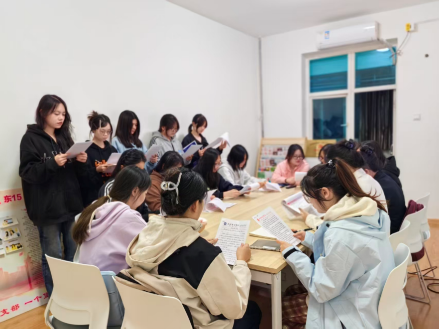 随后,支部学生党员们进行分享交流。有的回顾革命先辈抛头颅、洒热血的英勇事迹,深情缅怀峥嵘岁月;有的结合自身学习成长与实践经历,畅谈新时代青年党员的使命担当;还有的以细腻笔触挖掘红色地标背后鲜为人知的历史细节,让红色记忆更加鲜活可感。一篇篇真挚的文字如生动的历史画卷,在场学生党员们在品读中回望初心、汲取力量,在深入交流中凝聚共识、激发思想共鸣。