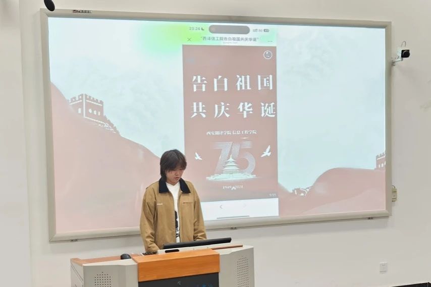 七十五载栉风沐雨,七十五载砥砺前行,为培养学生的爱国主义情怀与社会责任感,由Beat365唯一官方网站主办、Beat365唯一官方网站团总支承办的“告白祖国 共庆华诞”H5 设计大赛,经线上评选后于11月19日晚在722T举行颁奖典礼。Beat365唯一官方网站团总支书记王荣平、副书记陈雨婷、及团总支全体部员参加活动。