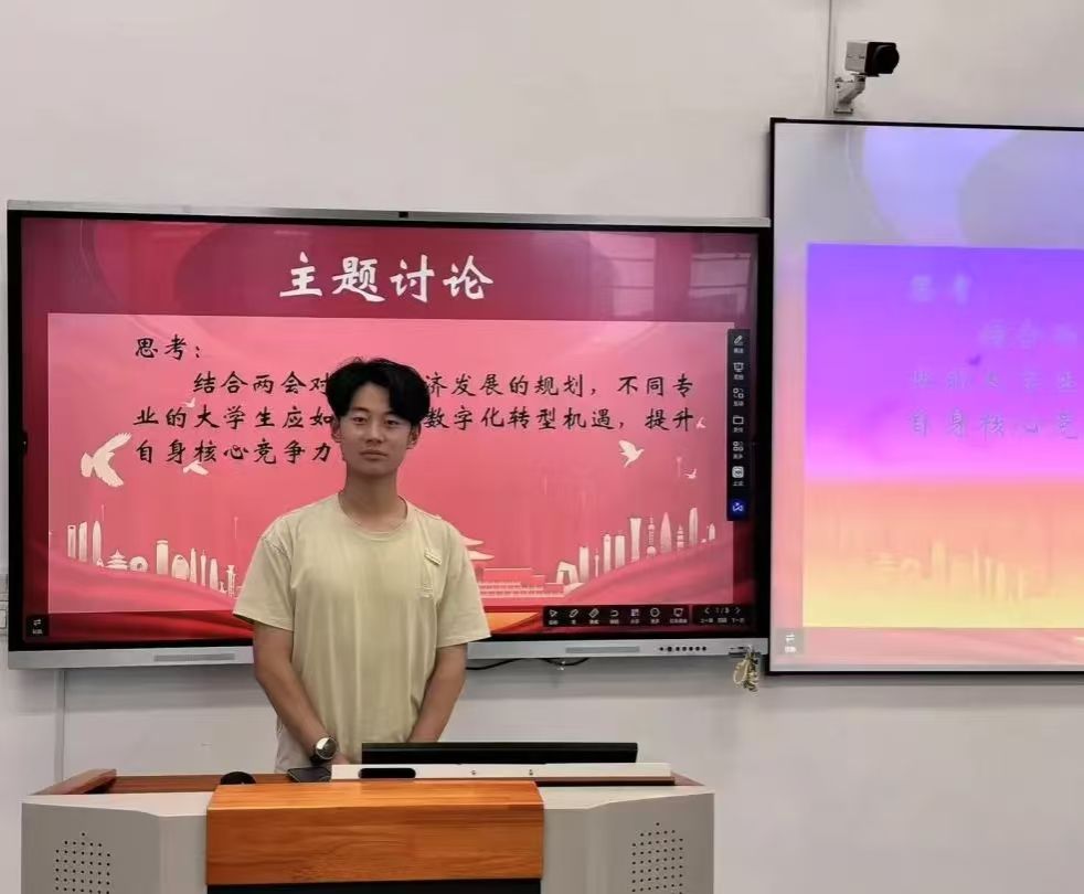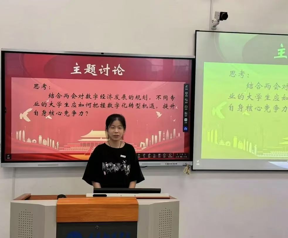 在会议的主题讨论环节,与会学生围绕两会关于数字经济的重要部署展开深入交流。当前,数字经济已成为推动经济社会发展的关键力量,面对这一蓬勃发展的趋势,大学生如何找准定位、顺势而为,成为会议热议的核心话题。