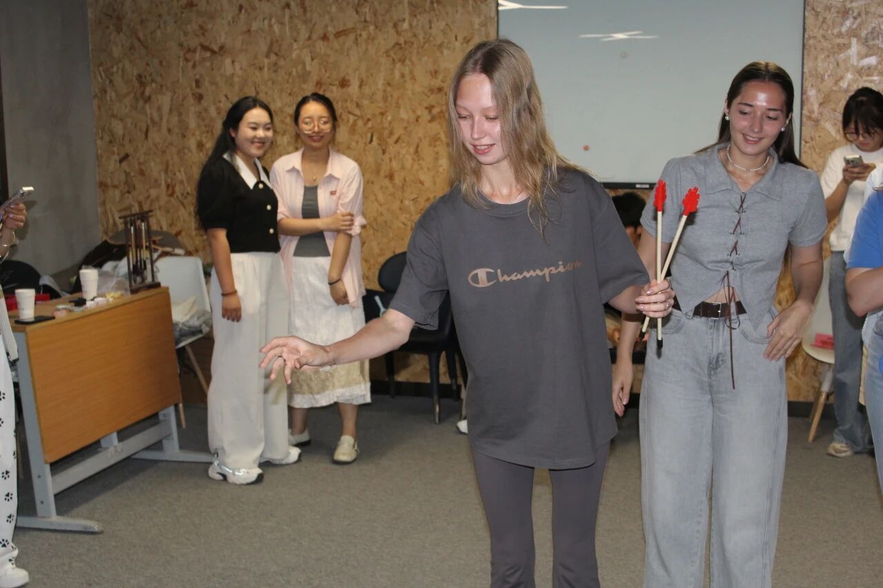 中俄学生分组站定,手中箭矢于光影中闪着冷冽又灵动的微光。主持人一声令下,手臂舒展,箭矢如流星射出,打破空气的凝滞。有人掷出后紧张期待,有人因偏差而憨笑。喝彩与惋惜声交织,青春朝气在箭矢间激荡,跨国友谊也升温。