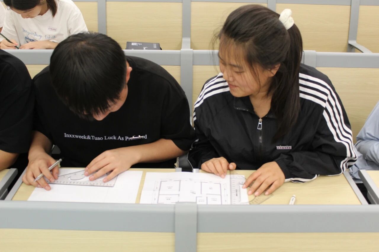在比赛中,同学们更是热情高涨,迅速进入状态,眼神专注、笔触灵动,在A4纸上勾勒线条、标注数据。有的小组分工明确,测量、绘图、核对同步推进;有的同学独自奋战,凭借扎实功底细致描绘。60分钟里,绘图声、讨论声交织,每一笔都凝聚着对测绘知识的理解,每一步都彰显着青春的拼搏劲儿,将理论化为纸上跃动的“测绘密码”。