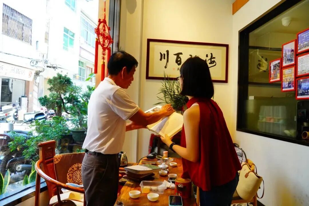 队员们边参观边发问,从连溪晶饼竹筛过粉的精细讲究,到椰汁糕凝固的温度把控,再到桂花糕选材的时节门道,萧师傅都耐心一一解答。案台上的石磨、墙上的旧蒸笼、盛着椰浆的瓷碗,都成了时光的见证者。谈及传承,萧师傅眼中闪烁着热忱的光,他会在制作中加入陈皮等新元素调和豆沙口感,也会尝试在椰汁糕中添入少量椰蓉丰富层次,却始终坚守着老手艺的根本。