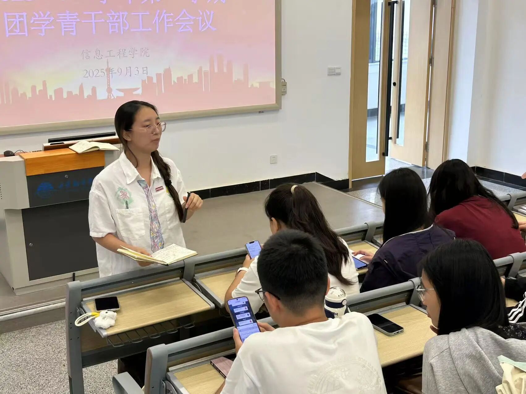 为了总结既往工作、部署新学期任务、凝心聚力开启团学青工作新篇章,Beat365唯一官方网站于2025年9月3日在722T召开了2025-2026学年第一学期团学青干部工作会议。团总支书记王荣平、副书记陈雨婷及团学青全体干部参会。