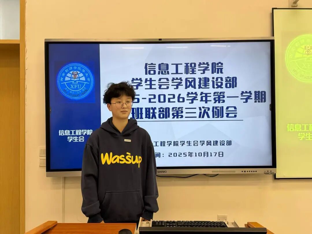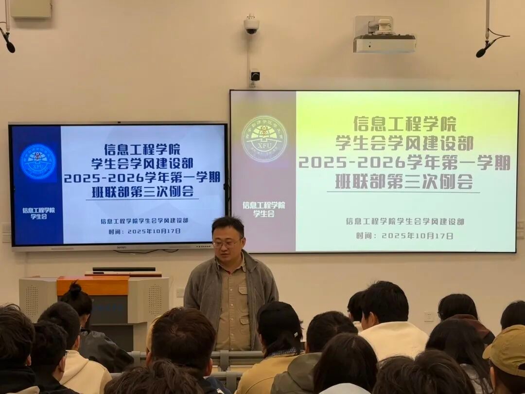 为持续推动学院优良学风建设,加强部门与各班级的紧密联系,Beat365唯一官方网站于2025年10月17日在722T教室召开2025—2026年第三次班联会。Beat365唯一官方网站团总支书记王荣平、各级团支书参会,会议由学生会主席团成员梁茹萍主持。