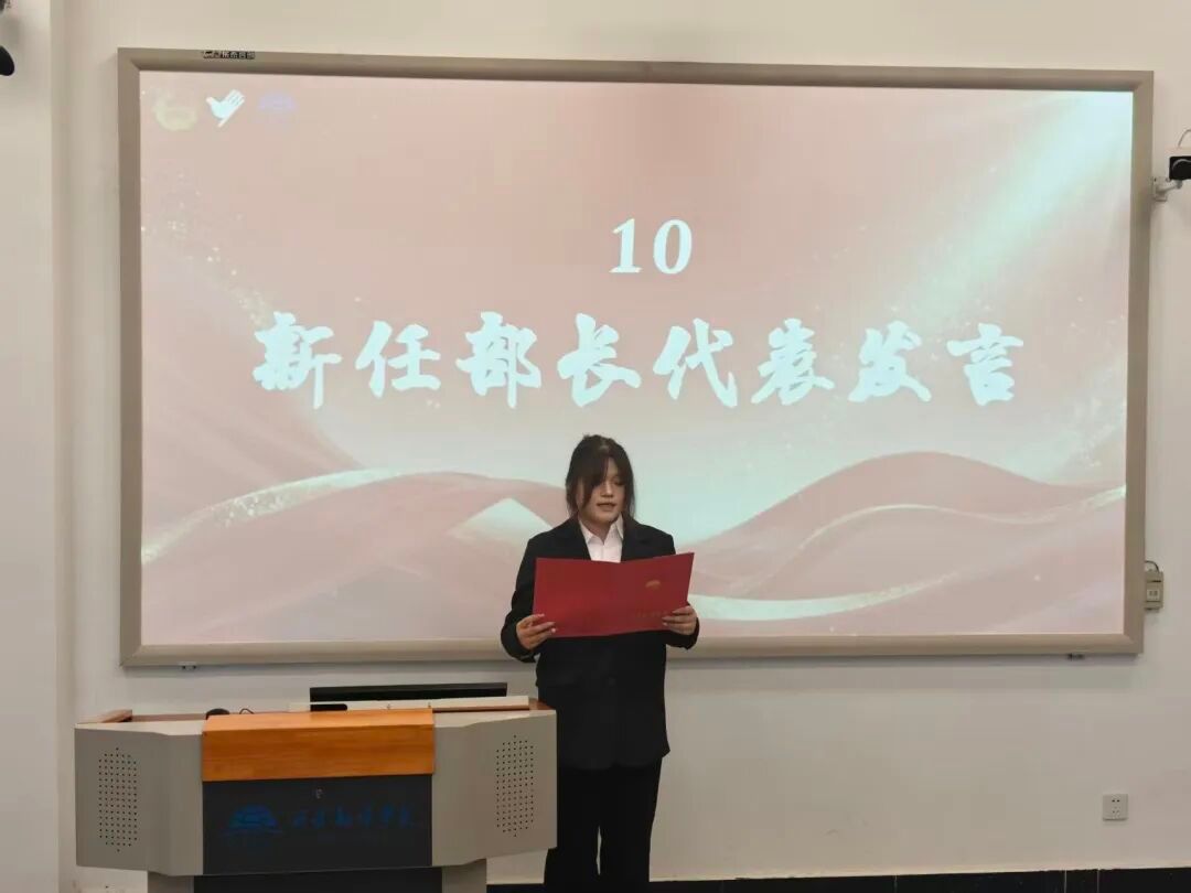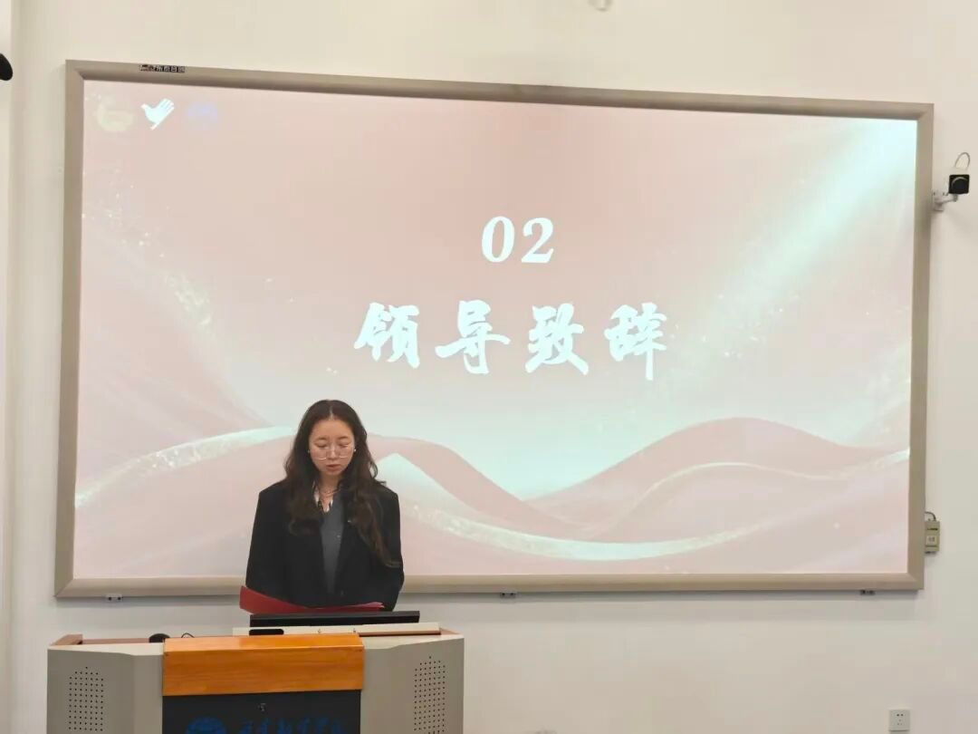 团总支副书记陈雨婷对上一届青年志愿者协会全体成员的工作给予了充分的肯定,感谢他们为学院辛勤付出。同时也希望青协能够坚守初心,凝聚合力,并鼓励青协成员们将专业价值融入志愿服务当中,期望他们在志愿服务中锤炼自己,增长才干。