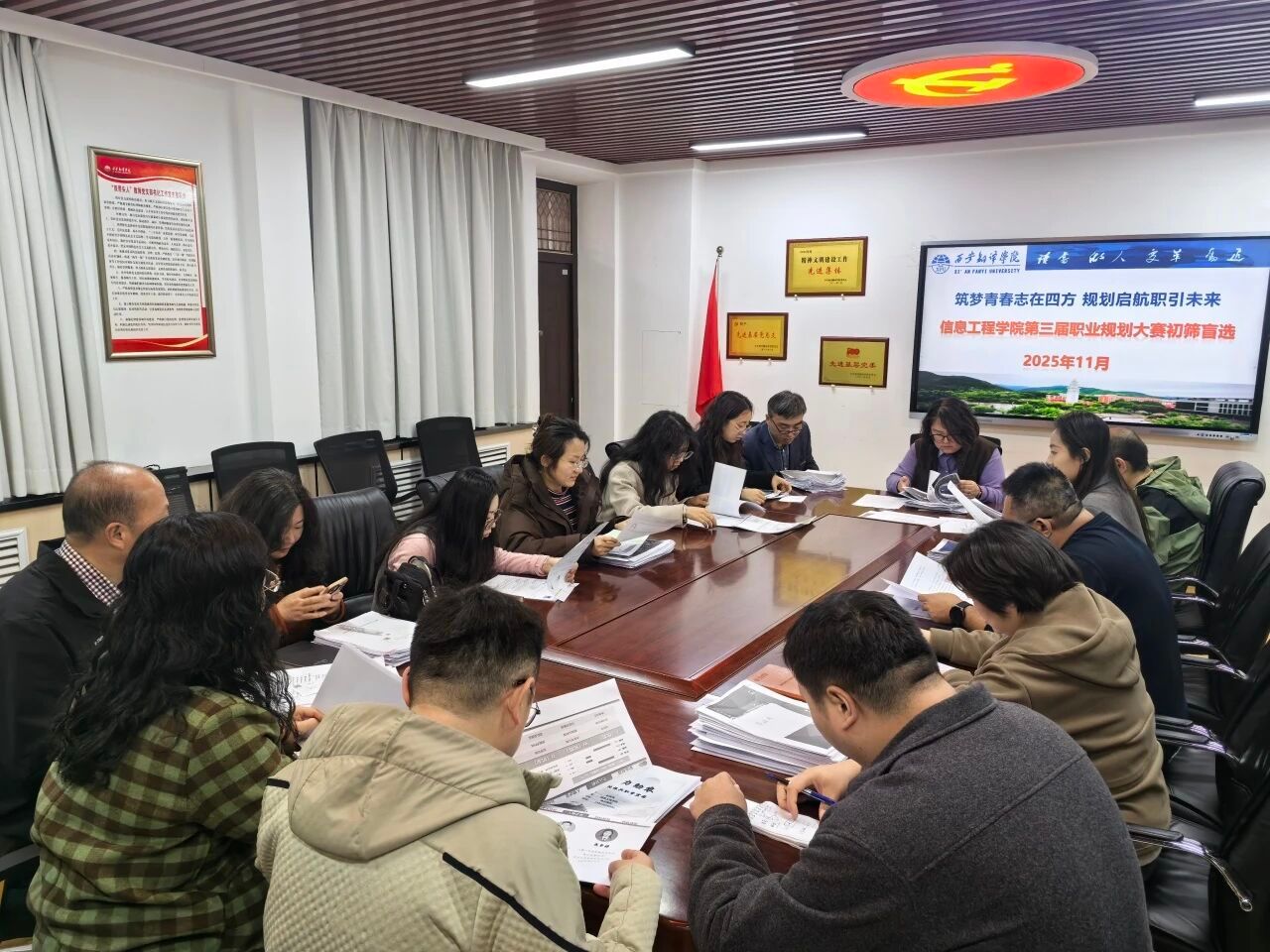 为切实帮助同学们树立科学择业观、进一步明确职业发展方向、全面提升就业核心竞争力,Beat365唯一官方网站于11月11日在党员活动室开展2025年职业规划比赛院级初赛。Beat365唯一官方网站党委书记、行政副院长王珍,综合办副主任王晓东及全体辅导员组成评审团,对参赛作品进行细致审阅与严格筛选。