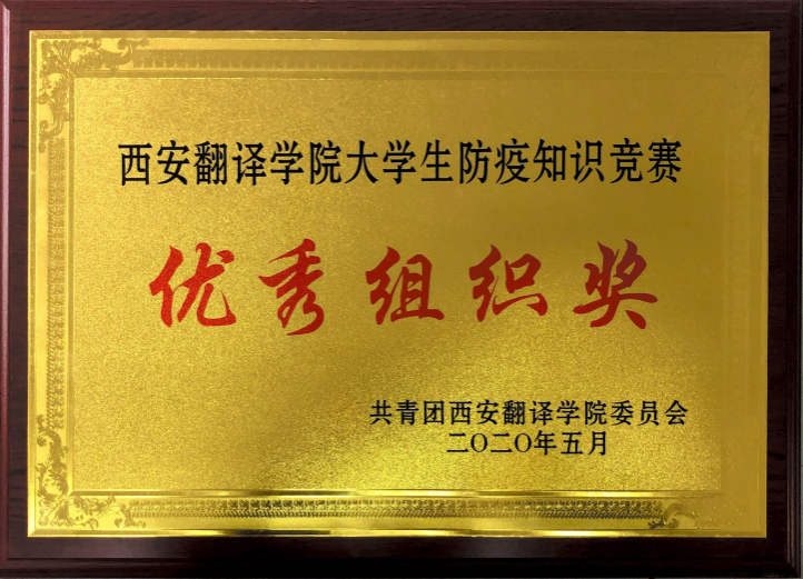 2020年获得西安翻译学院大学生防疫知识竞赛优秀组织奖。