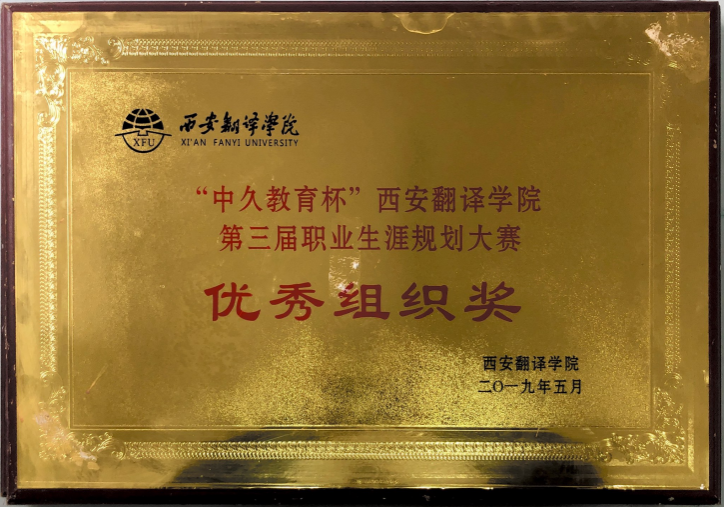 2019年获得“中久教育杯”西安翻译学院第三届职业生涯规划大赛优秀组织奖;
