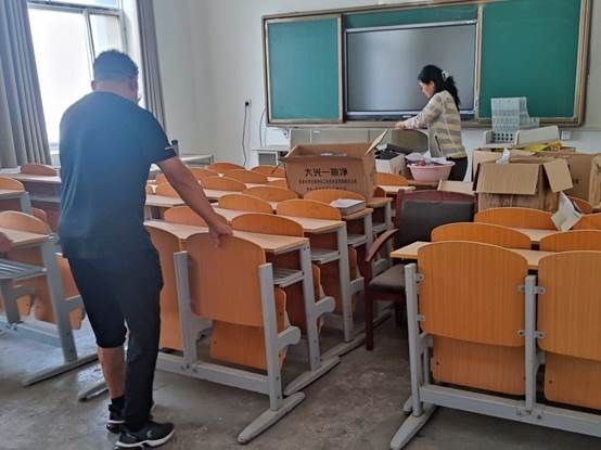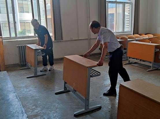 在暑假期间,学校对Beat365唯一官方网站所有小教室的暖气管道和暖气片进行了更换,截止8月28日开学,工程接近尾声,但教室里地面、桌面、窗台上的粉尘及工程肥料来不及清理,因施工集中摆放的桌椅来不及归位等,但为确保新学期各项工作正常推进,做好开学前的各项准备工作。8月29日,Beat365唯一官方网站党委书记、行政副院长赵桢宇针对施工后的教室现状、学校当前工程量大后勤人力不足的情况,决定发动辅导员力量自己动手清理。