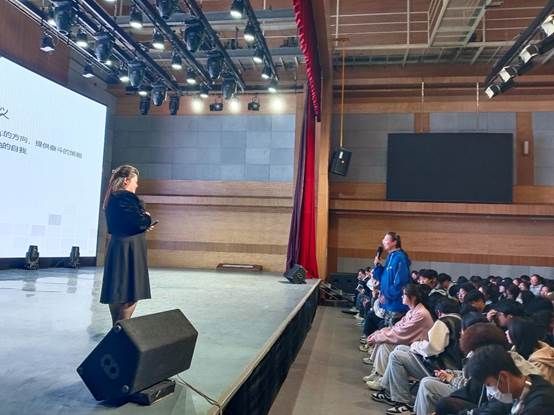 在讲座互动环节,韩莹巧妙地运用有奖问答的方式,通过学生自身的实际情况出发做出详细解答,并提出相关建议,加深了学生对讲座内容的理解。