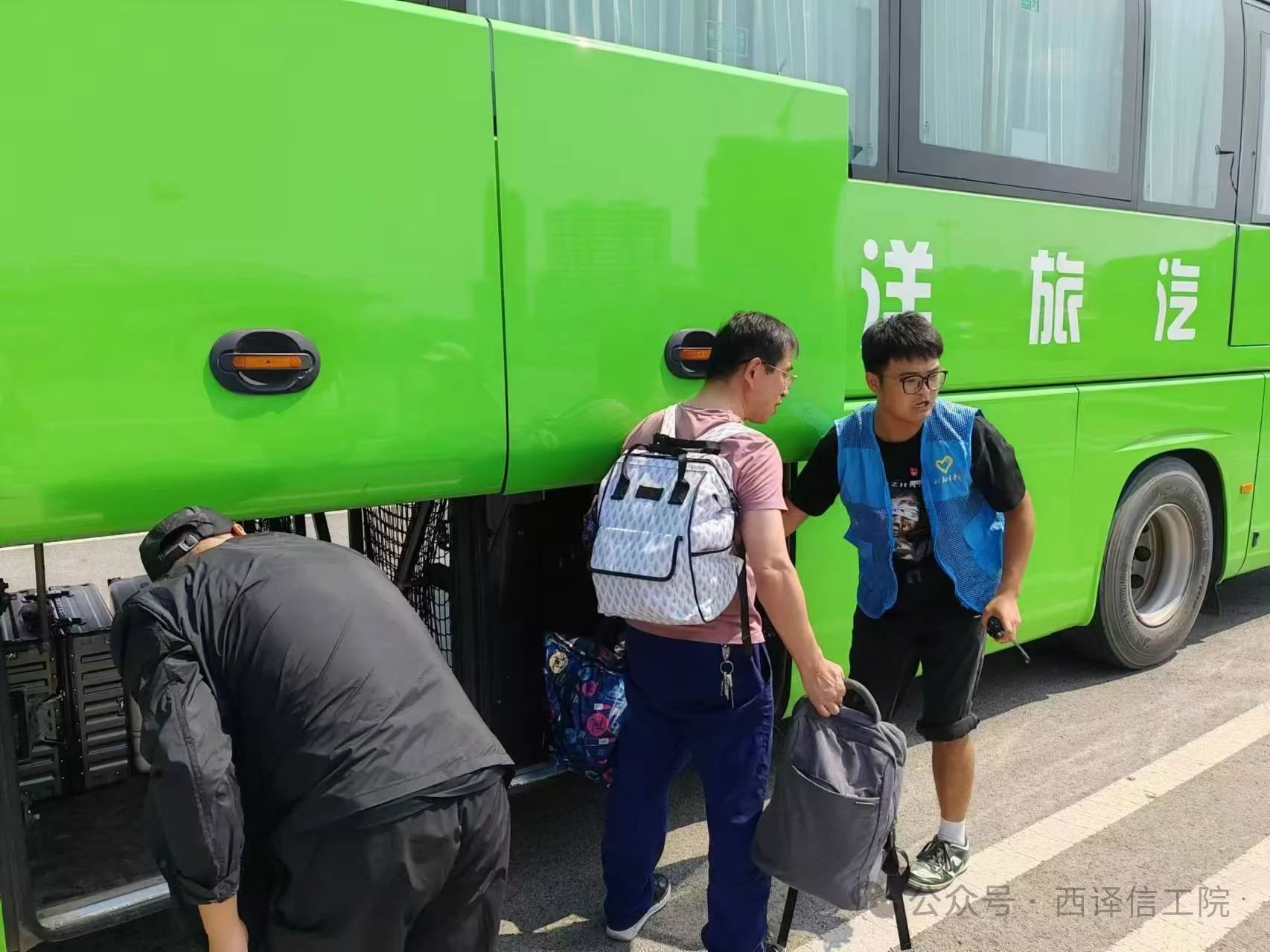 高举着“西安翻译学院”的指示牌