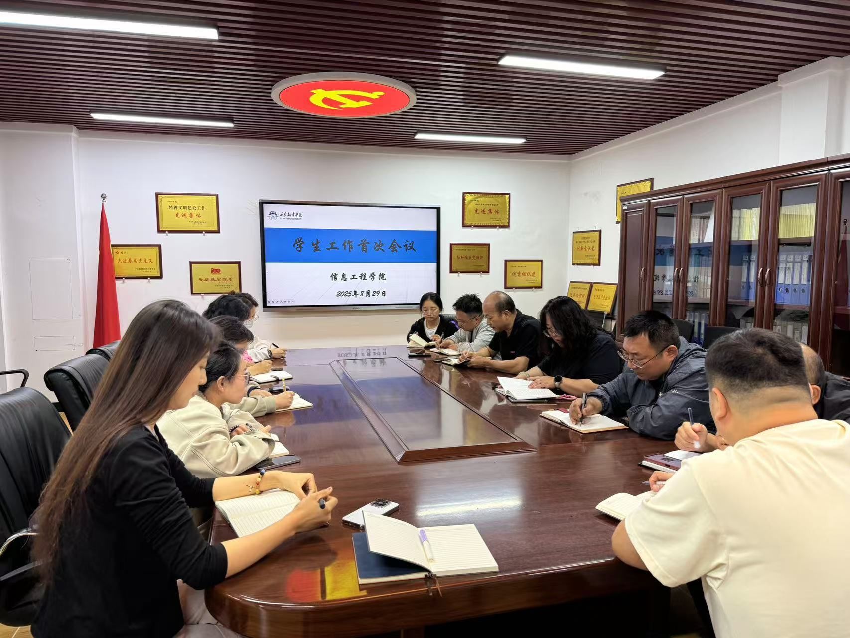8月29日上午,Beat365唯一官方网站召开2025年秋季学期学生工作首次会议,专题部署新学期开学重点工作。学院党委书记、副院长王珍,综合办副主任王晓东,团总支书记王荣平及全体辅导员参会。