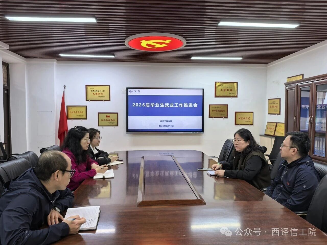 会上,王珍总结梳理了 2025 年 9 月 17 日学校大型招聘会的学生参会情况,并对后续就业工作目标进行了再次拆解与明确;同时与科大讯飞驻校老师高若云就 2025 届就业情况进行复盘,同步了 2026 届当前面临的形势。高若云也介绍了科大讯飞现有的就业帮扶机制,表示校企共建目标一致,将继续为 2026 届毕业生就业提供支持。