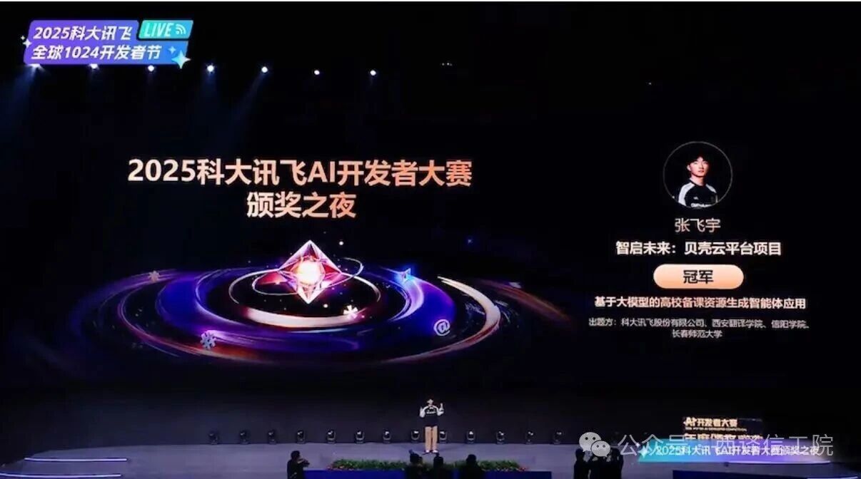 11月6日,合肥体育中心星光熠熠,“1024开发者大赛”全国总决赛颁奖盛典在此落幕。西安翻译学院讯飞智译工坊凭借“智启未来——贝壳云平台”项目,从全球高校与企业顶尖开发团队的激烈角逐中突围,成功摘得全国总决赛冠军。这一荣誉不仅是我校在该项国家级赛事中的历史性突破,更标志着西译学子在人工智能教育应用领域的创新实力获得行业顶级认可。