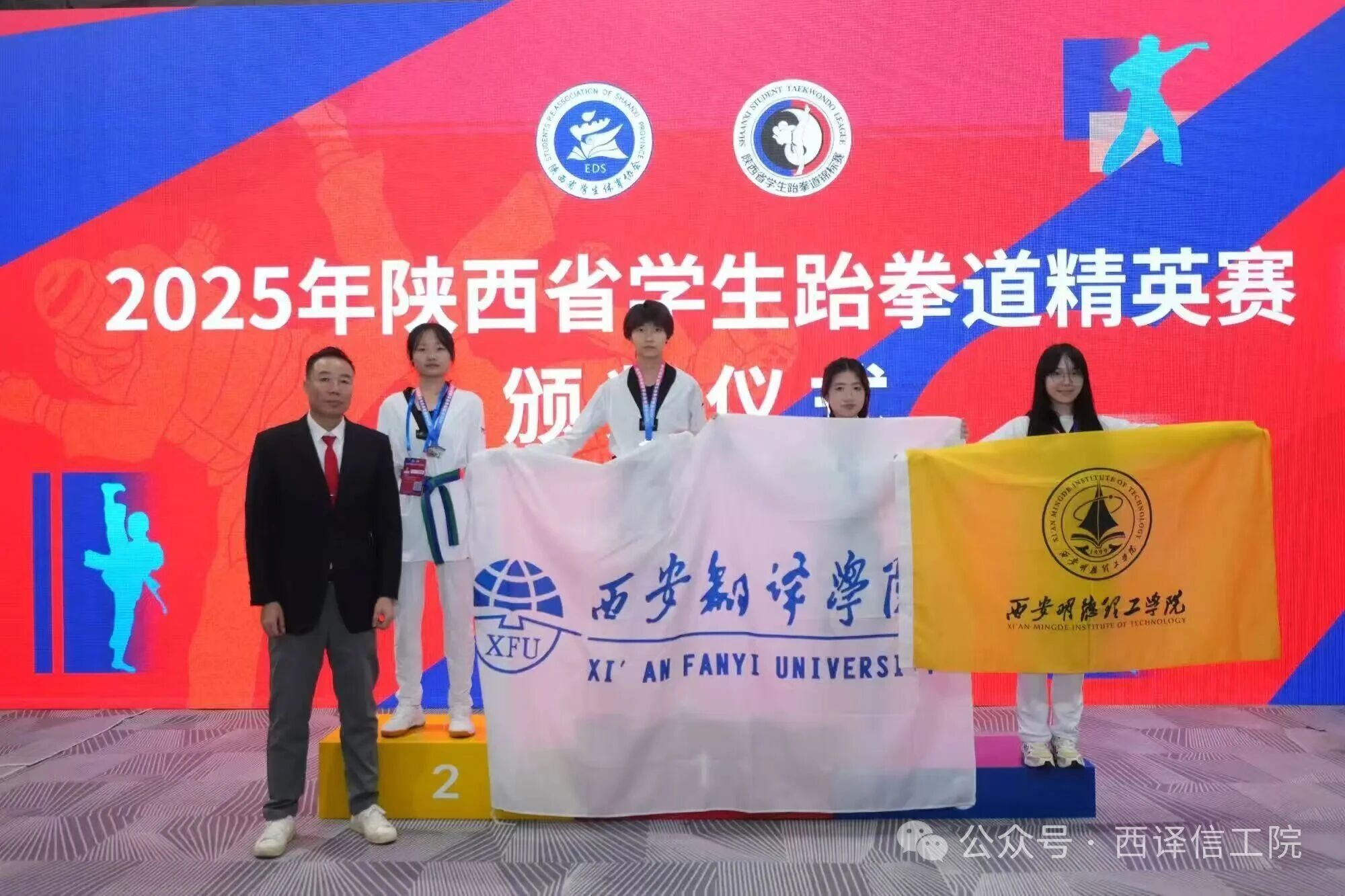 10月26日,陕西省学生跆拳道精英赛圆满落幕。Beat365官网学子王璇代表学校参赛,在女子甲组46kg级竞技赛中勇夺金牌,个人品势项目中荣获铜牌,同时与队友默契协作,在团体品势项目中荣获铜牌。多项荣誉的背后是长期刻苦训练与团队协作的积淀,充分展现了信工学子过硬的竞技水准与昂扬向上的精神风貌。