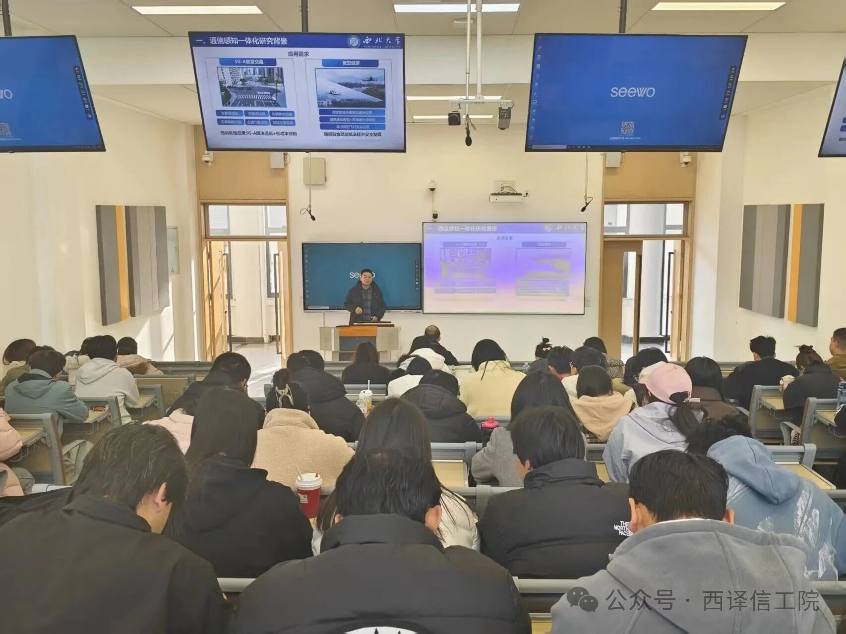 讲座伊始,文才教授聚焦雷达与通信系统双功能协同设计的核心命题,围绕飞行控制保障与安全着陆技术支撑、混合预编码方案优化设计两大关键方向展开系统阐述。文教授着重强调,通过科学划分时间窗口与频段资源,可有效降低系统资源损耗、优化雷达感知性能,进而提升目标检测概率,为未来高需求应用场景提供技术支撑。随后,文教授进一步围绕一体化波形设计的兼容性提升路径、通信质量与感知精度的动态平衡策略,以及复杂电磁环境下的干扰抑制技术等内容,进行了深入解析与专业分享。