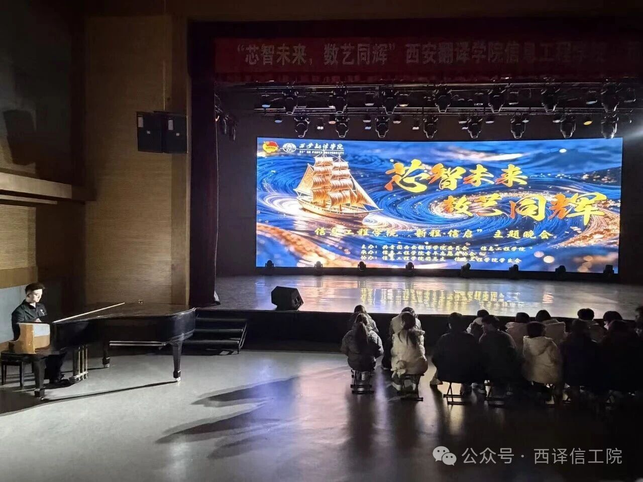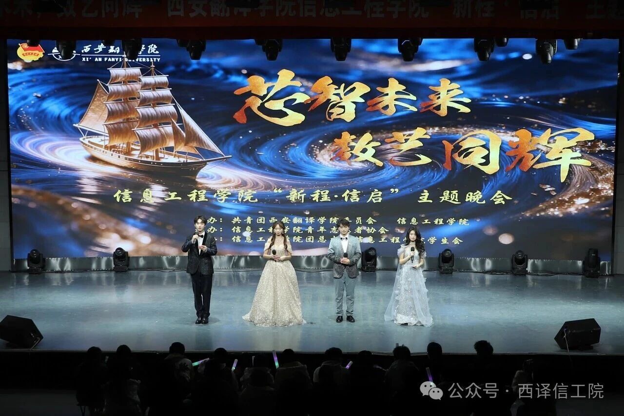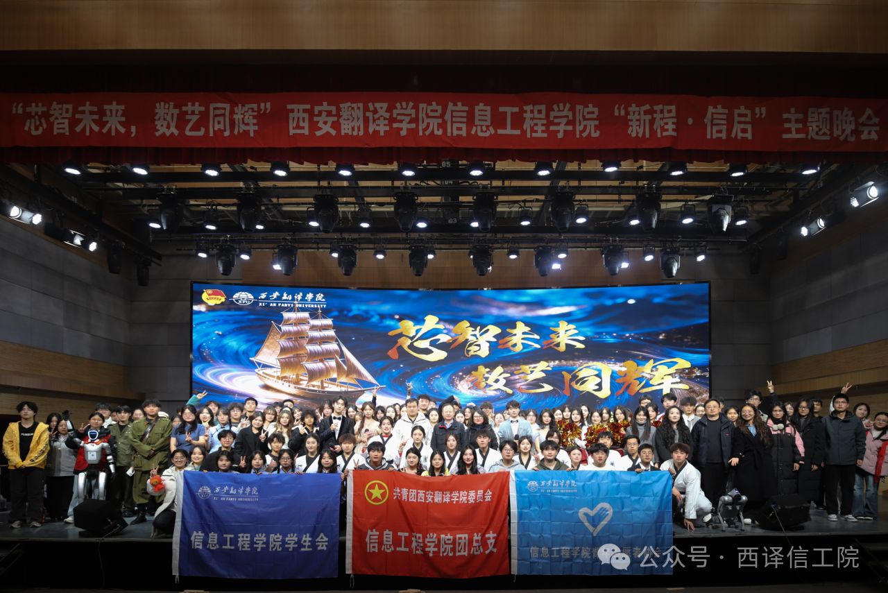 12月15日晚,由共青团西安翻译学院委员会、Beat365唯一官方网站青年志愿者协会主办,Beat365唯一官方网站团总支、Beat365唯一官方网站学生会协办的2025年“芯智未来,数艺同辉”Beat365唯一官方网站“新程·信启”主题晚会在东区演播大厅隆重举行。