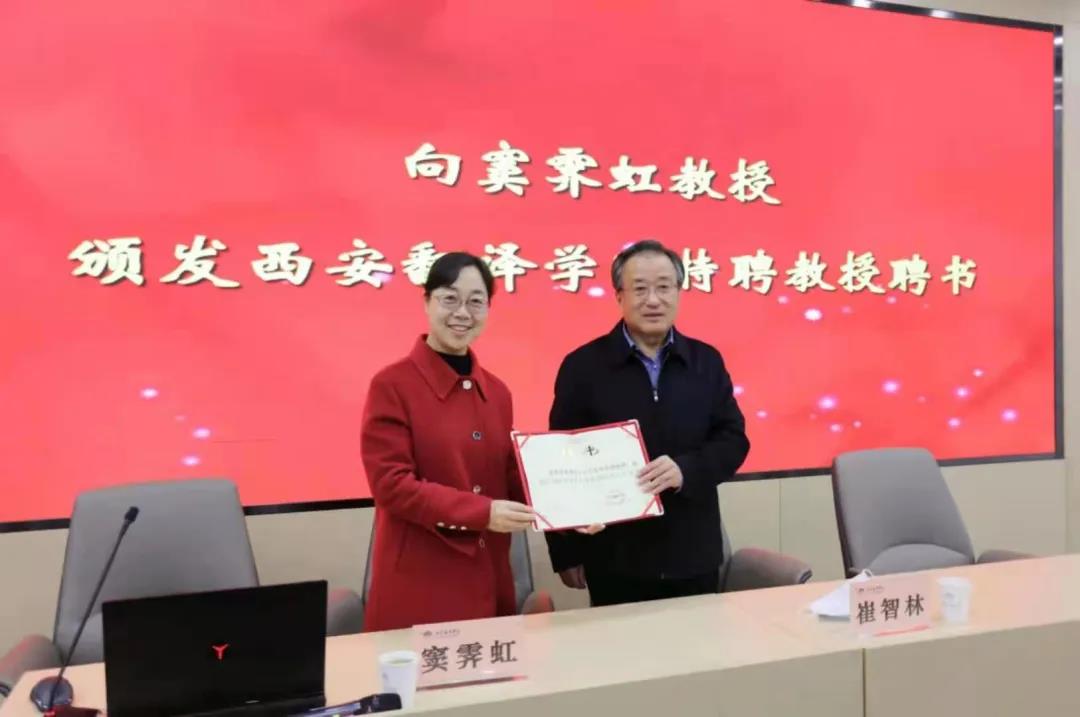 近日,西北大学窦霁虹教授被聘为我校特聘教授,执行董事崔智林出席聘任仪式,并代表学校为窦霁虹教授颁发聘书。