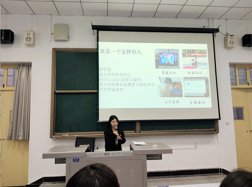 接着,十佳志愿者英文学院罗引娟,积极利用课余时间多次参加义工支教,尽自己的力量给空巢老人、留守儿童带去温暖,为弘扬中华民族传统美德不断努力。她讲到,作为新时代大学生一定要珍惜在校时光,不忘初心,砥砺前行,发扬敢为人先,无私奉献的西译精神。