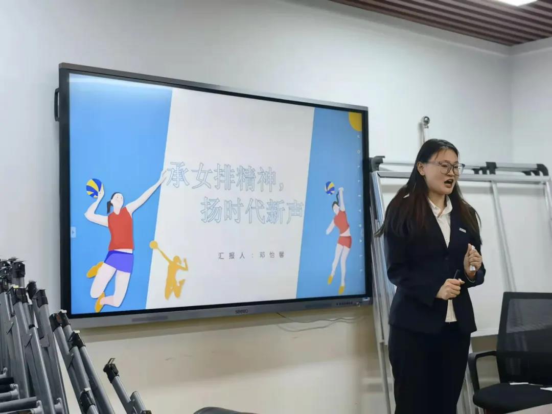 邓怡馨讲述的主题是女排精神,面对困难,始终有那么一股不服输的拼劲、打不垮的韧劲,女排精神传承了中华民族的宝贵精神品格和优秀文化基因。