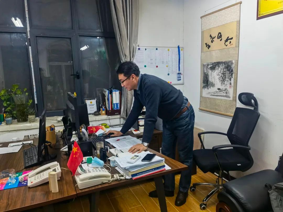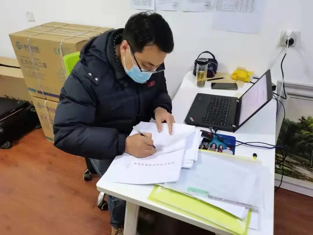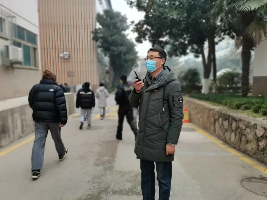 以身作则,他是困难问题的“主攻手”。他在疫情防控期间的过度劳累导致腰疾复发,疼痛难忍,同事们都劝他休息休息,可他始终坚守在岗位上,加班至深夜,轻伤不下火线。把工作抓在手上,把责任扛在肩上,他以父母般的情怀时刻关注着封校期间学生的生活,走进宿舍为学生派发口罩和消毒湿巾,询问学生生活状况,心理状态,耐心为学生进行心理疏导。扎实做好引导,为打赢防疫阻击战全力以赴。